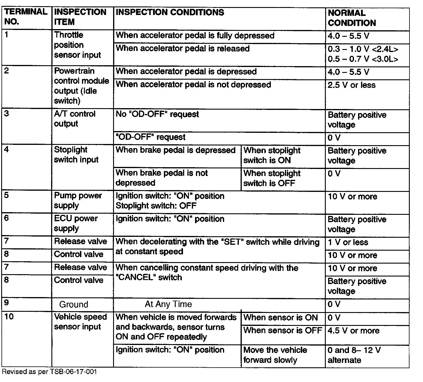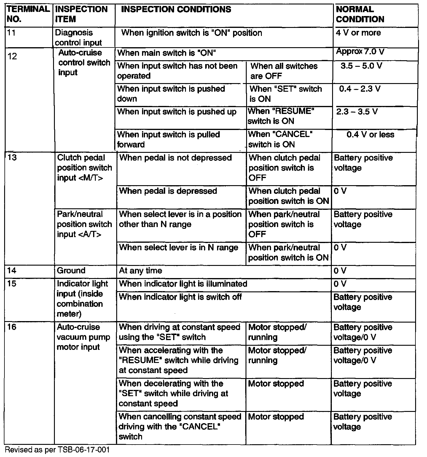 Pinout Values and Diagnostic Parameters