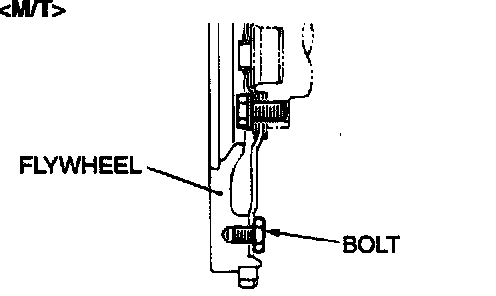 CAUTION: Do not remove the flywheel mounting bolt shown by the arrow. If this bolt is removed, me flywheel will become out of balance and damaged.