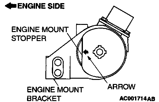 Clamp the engine mount stopper so that the arrow points in the direction in the diagram.