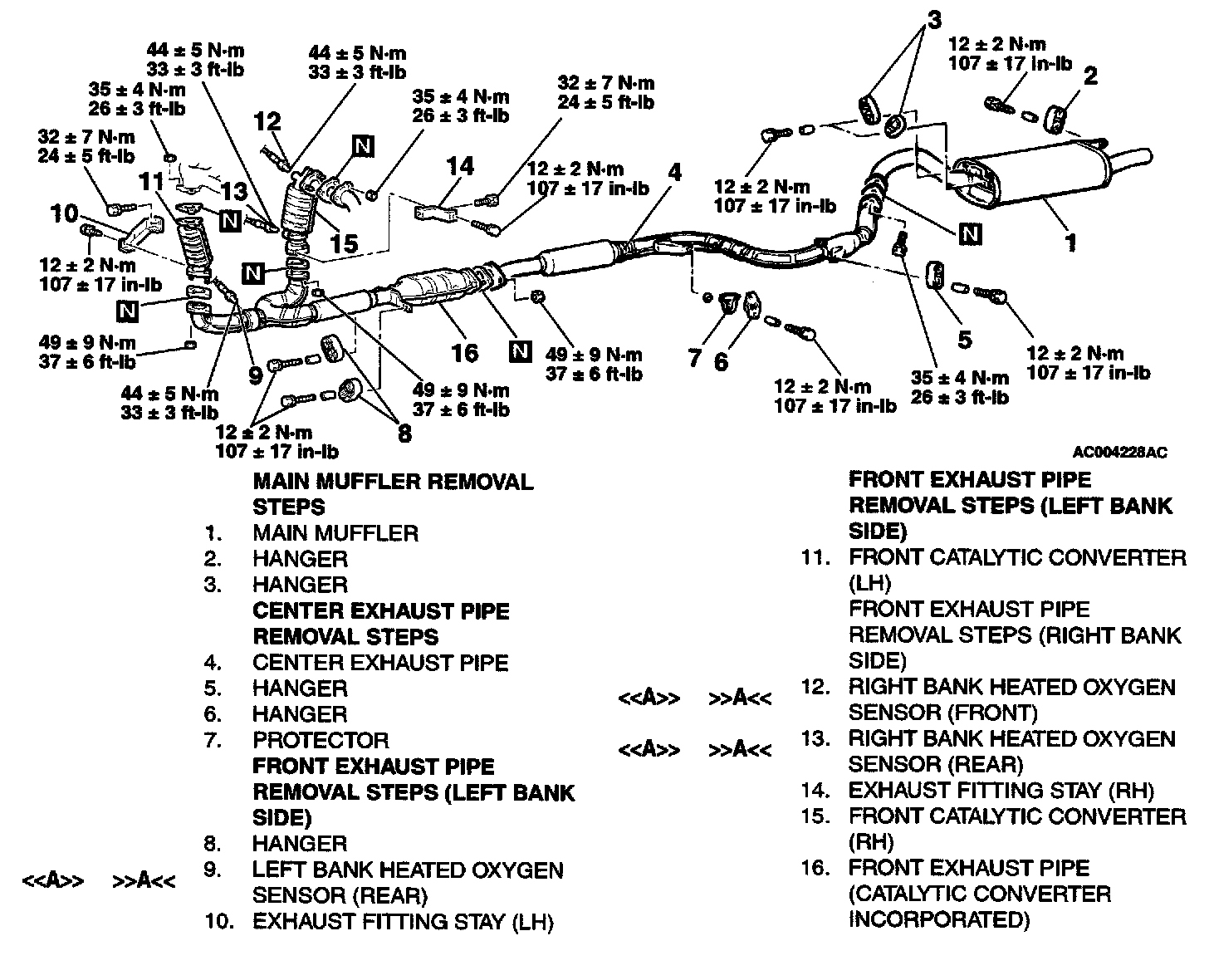 ]]A[[RIGHT BANK HEATED OXYGEN SENSOR (FRONT)/RIGHT BANK HEATED OXYGEN SENSOR (REAR)1 LEFT/BANK HEATED OXYGEN SENSOR (REAR) INSTALLATION