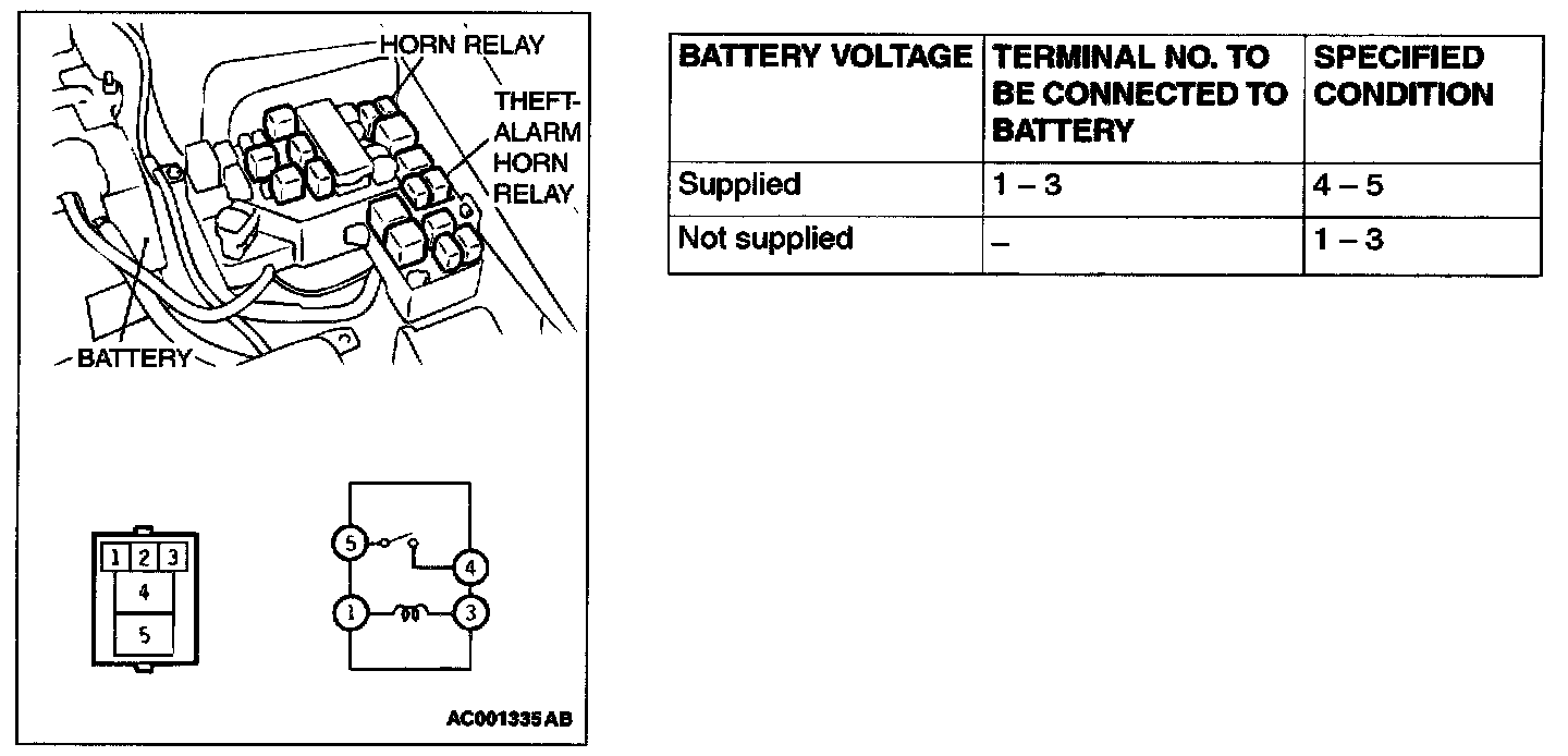 Horn Relay, Theft-Alarm Horn Relay Continuity Check: