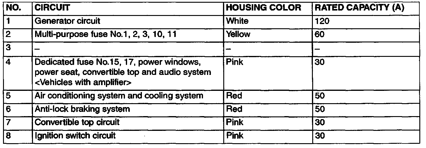 Fusible Links 2 - 8 (Relay Box In Engine Compartment):