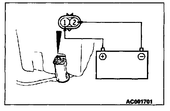 3. Check that the water squirts out strongly when battery positive voltage is applied to terminals 1 and 2.