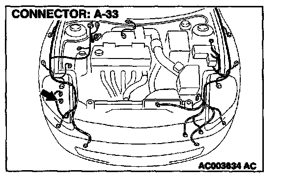 1. Disconnect the washer motor connector A-33 and measure at the harness side.