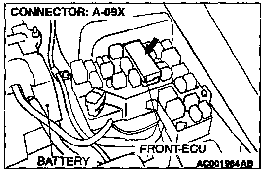 1. Use special tool MB991529 to connect a voltmeter between ground terminal 4 or 5 and ETACS-ECU terminal 9 of the data link connector.