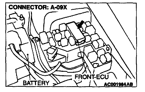 STEP 9. Check the harness wires between washer motor connector A-03 and front-ECU connector A-09X.