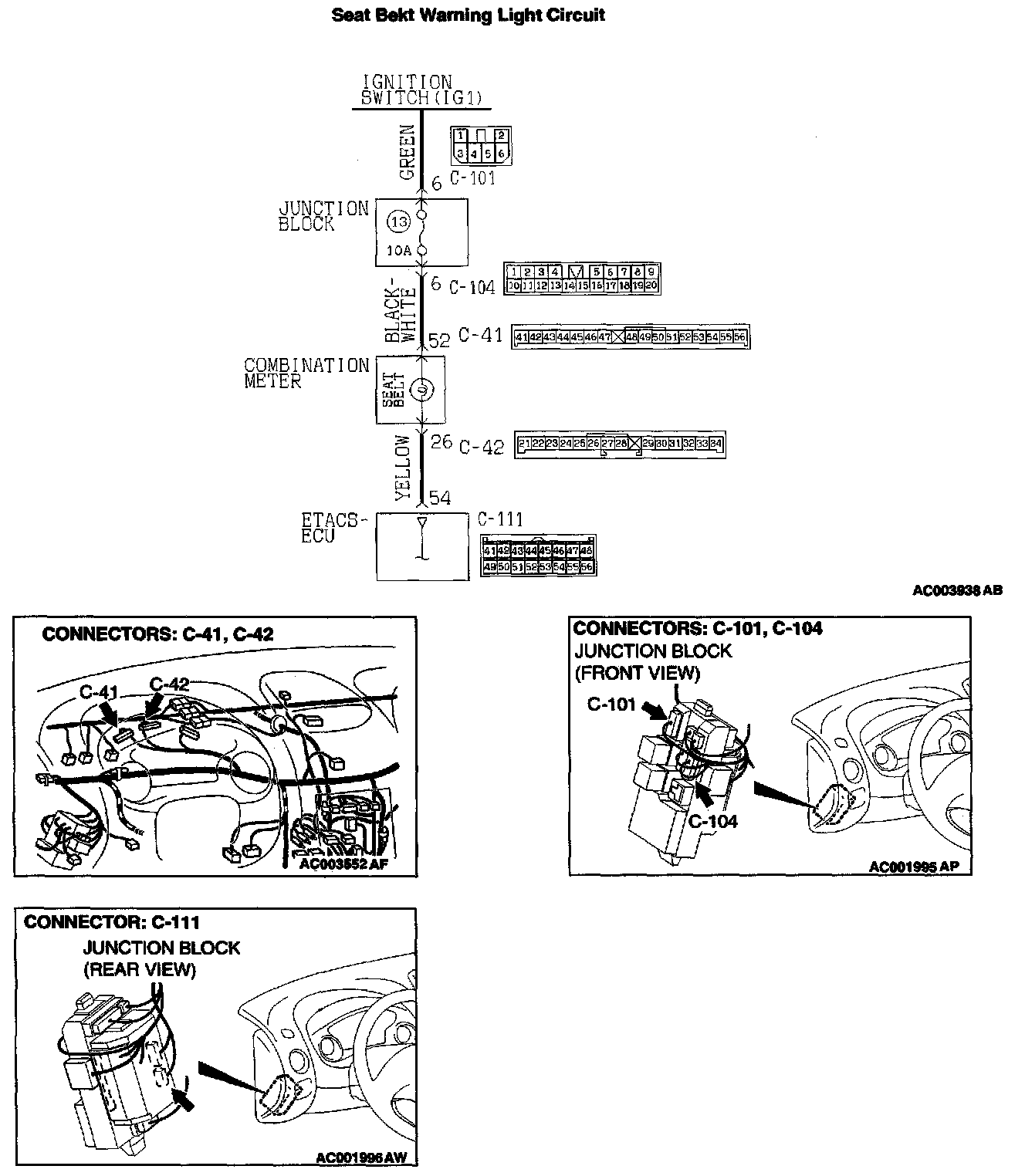 STEP 4. Check the seat belt warning light circuit at the ETACS-ECU connector C-111.