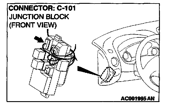 NOTE: After checking junction block connectors C-101 and C-104, check the wires. If junction block connectors C-101 and C-104 are damaged, repair or replace them. Refer to Harness Connector Inspection.