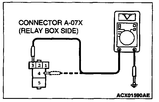 1. Use special tool MB991529 to connect a voltmeter between ground terminal 4 or 5 and ETACS-ECU terminal 9 of the data link connector.