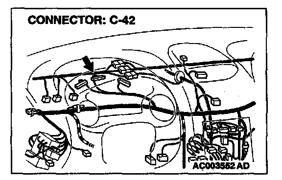 STEP 8. Check the harness wires between combination meter connector C-42 and battery.