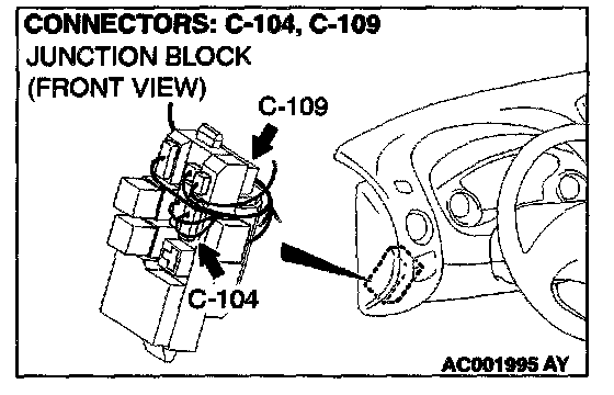 NOTE: After checking junction block connectors C-104 and C-109, joint connector C-78 and intermediate connector C-89, check the wires. If junction block connectors C-104 and C-109, joint connector C-78 and intermediate connector C-89 are damaged, repair or replace them. Refer to Harness Connector Inspection.