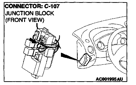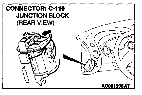 NOTE: After checking intermediate connector C-89 and junction block connector C-107 and C-110, check The wires. If intermediate connector C-89 and junction block connector C-107 and C-110 are damaged, repair or replace them. Refer to Harness Connector Inspection.
