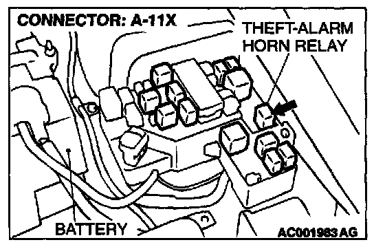 STEP 5. Check the theft-alarm horn relay connector A-11X for damage.