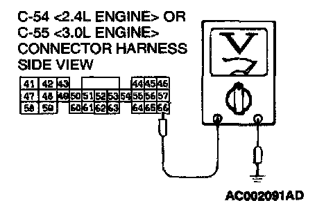 STEP 2. Check the backup power supply voltage at PCM connector C-54 <2.0L Engine> or C-55 <3.0L Engine> by backprobing.