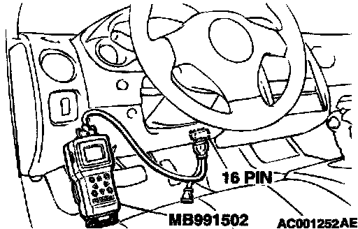 CAUTION: To prevent damage to scan tool MB991502, always turn the ignition switch to "LOCK" (OFF) position before connecting or disconnecting scan tool MB991502.