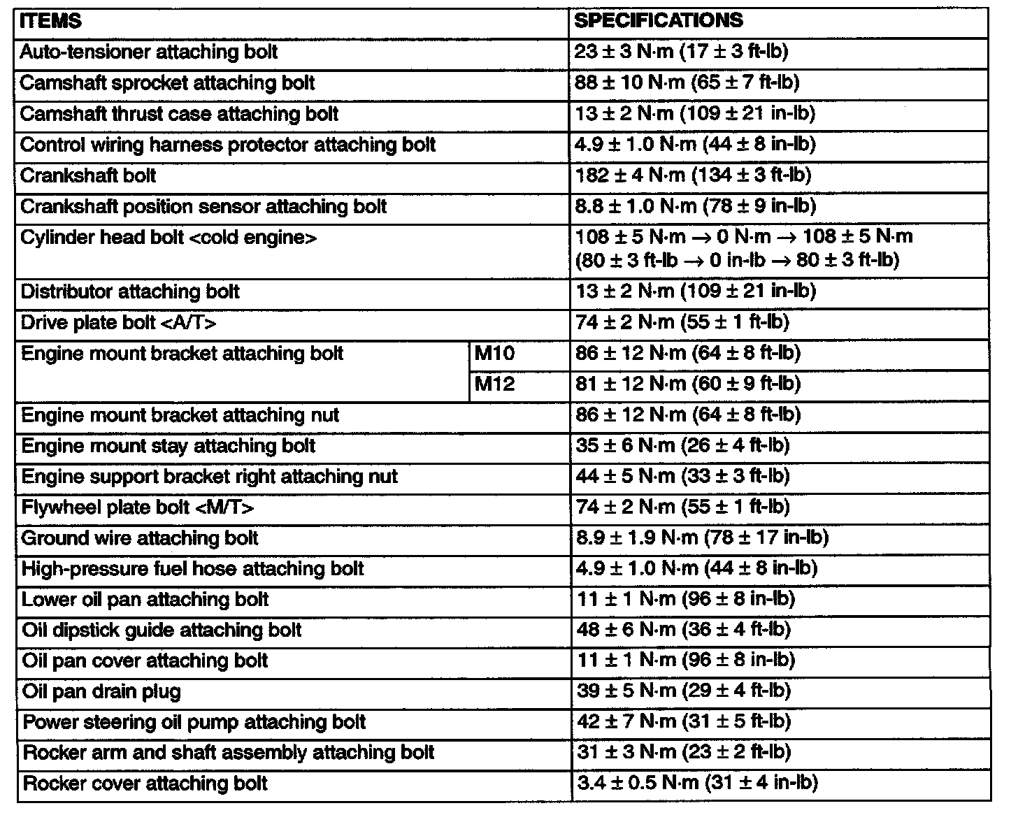 Tightening torque: 108 ± 5 Nm (80 ± 3 ft. lbs.)