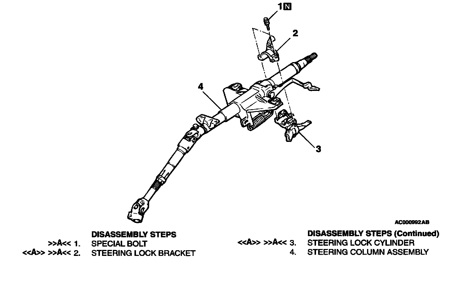 ]]A[[ STEERING LOCK CYLINDER/STEERING LOCK BRACKET/SPECIAL BOLT INSTALLATION