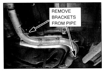 11. Remove two exhaust pipe brackets from the rear exhaust pipe.