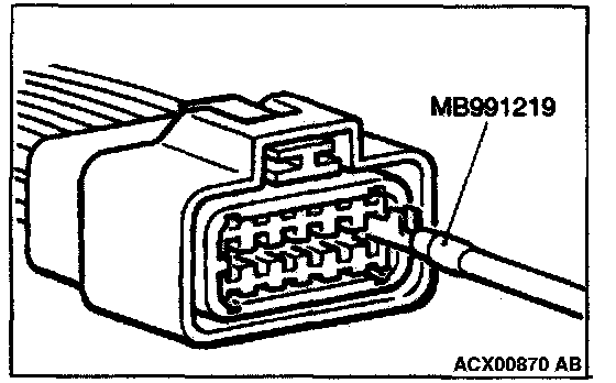 Use special tool, MB991219 to inspect the engagement of the male Pins and female pins. [Pin drawing force: 1 N (0.2 pound) or more]
