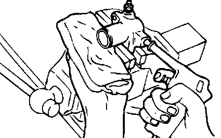 1. Cover with a shop towel to prevent the piston from popping out.