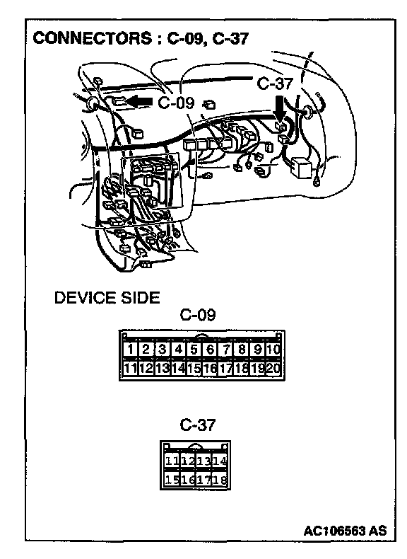 STEP 4. Check the Compass-ECU connector C-37 and multi center display connector C-09.