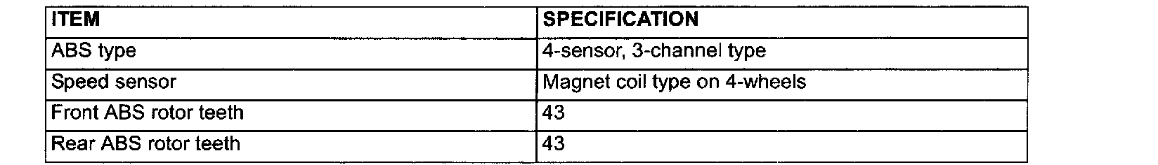 GENERAL DESCRIPTIONThe ABS consists of components such as the wheel speed sensors, stoplight switch, hydraulic unit assembly (integrated with ABS-ECU),ABS rotor, and the ABS warning light. If a problem occurs in the system, the malfunctioning components can be identified and the trouble symptoms will be memorized by the diagnostic function.