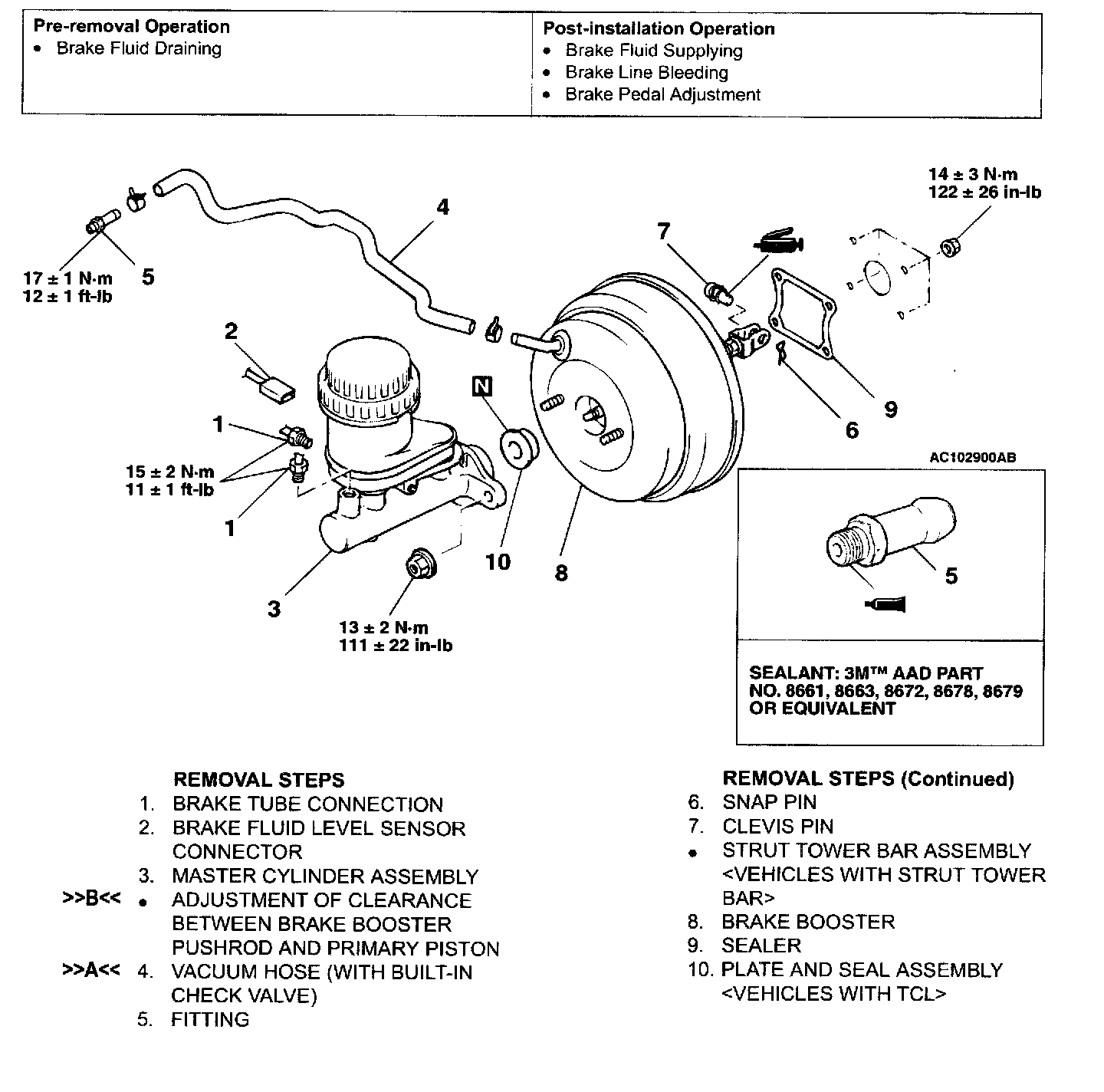 >>B<< CLEARANCE ADJUSTMENT BETWEEN BRAKE BOOSTER PUSHROD AND PRIMARY PISTON