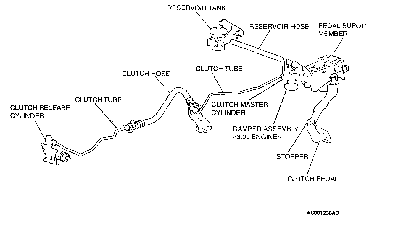 The clutch is a dry single-disc, diaphragm type; hydraulic pressure is used for the clutch control.
