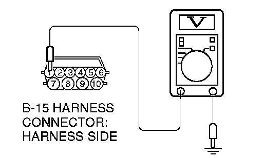 STEP 2. Measure the sensor output voltage at the A/T control solenoid valve assembly connector B-15 by backprobing.