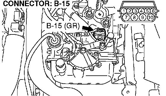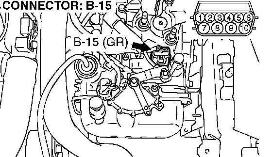 STEP 7. Check A/T control solenoid valve assembly connector B-15 for loose, corroded or damaged terminals, or terminals pushed back in the connector.
