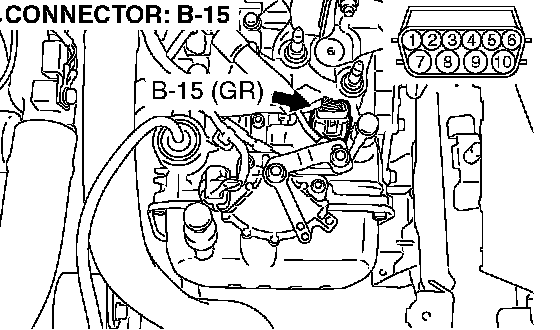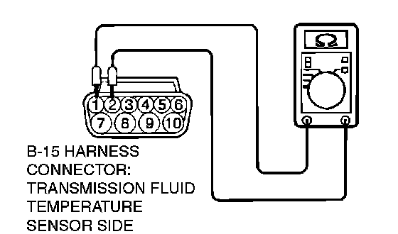 STEP 5. Check the transmission fluid temperature sensor at A/T control solenoid valve assembly connector B-15.
