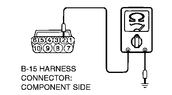 STEP 8. Measure the resistance of the ground circuit at A/T control solenoid valve assembly connector B-15.