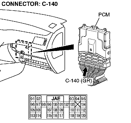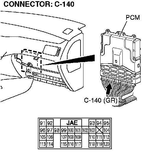 STEP 14. Check PCM connector C-140 for loose, corroded or damaged terminals, or terminals pushed back in the connector.