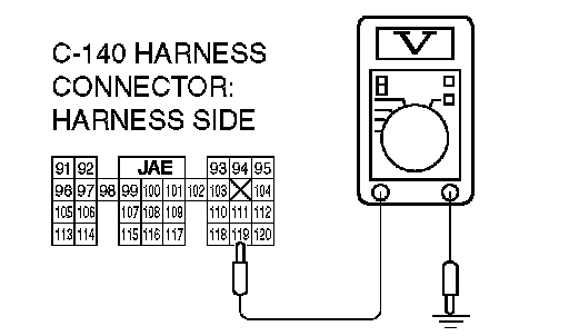 STEP 12. Measure the ground voltage at PCM connector C-140 by backprobing.