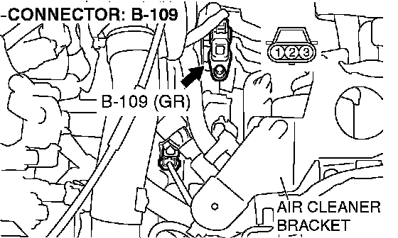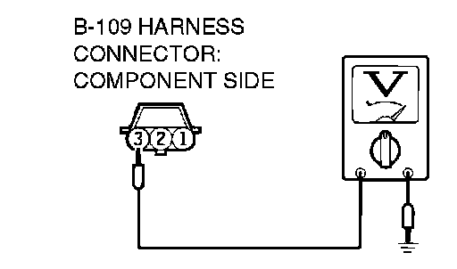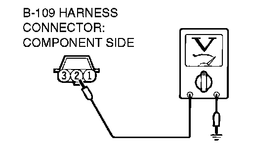 1) Disconnect connector B-109 from the speed sensor and measure voltage at the harness side.