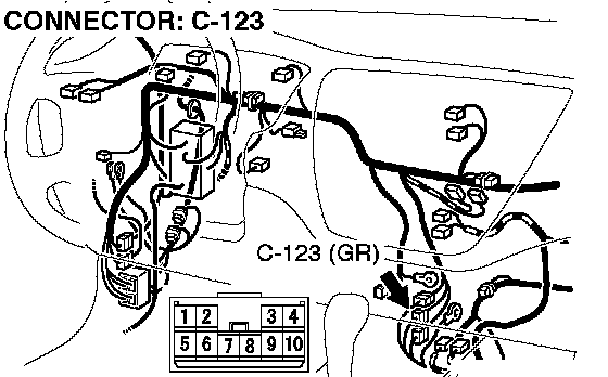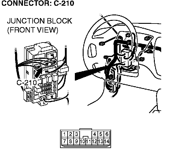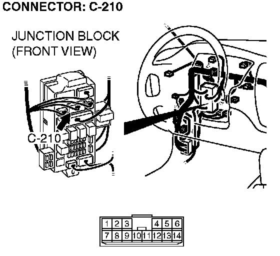 STEP 3. Check intermediate connector C-123 and junction block connector C-210 for loose, corroded or damaged terminals, or terminals pushed back in the connector.