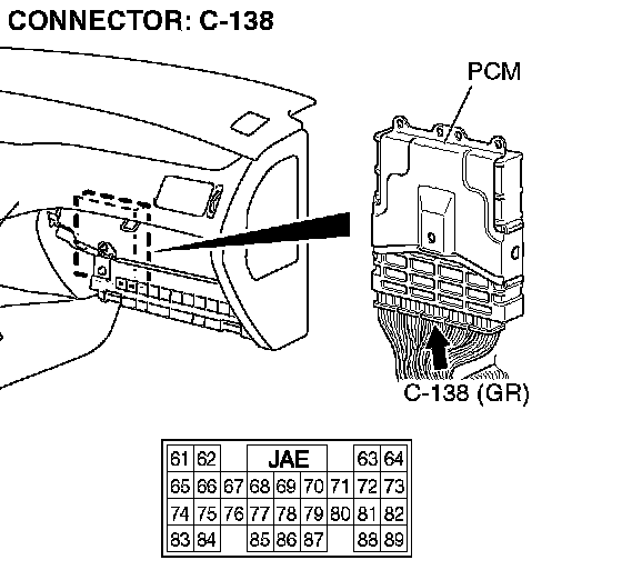 STEP 15. Check PCM connector C-138 for loose, corroded or damaged terminals, or terminals pushed back in the connector.