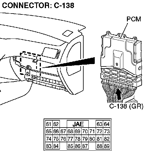 2) Connect an oscilloscope probe to PCM connector C-138 terminal 73 and 88.