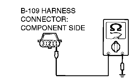 1) Disconnect connector B-109 from the speed sensor and measure at the harness side.