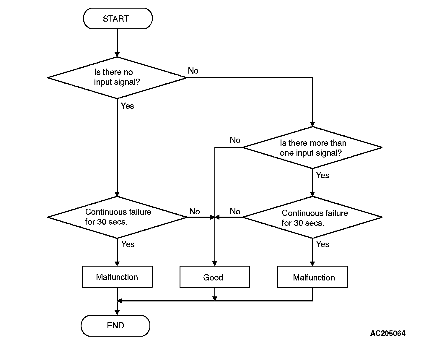 ^ If two types or more of signals are input from transmission range switch for more than 30 seconds, PCM judges that transmission range switch has a failure.