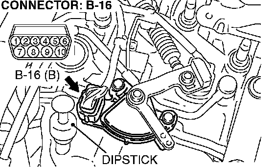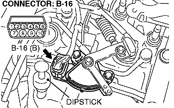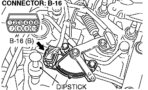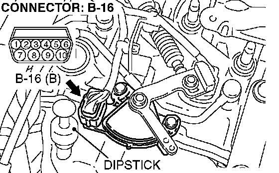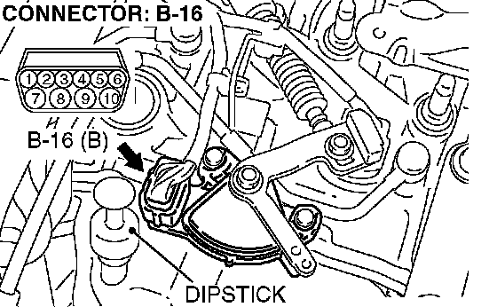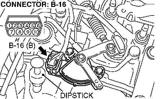 STEP 2. Check transmission range switch connector B-16 for loose, corroded or damaged terminals, or terminals pushed back in the connector.