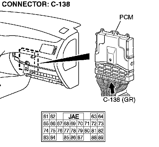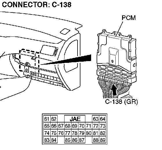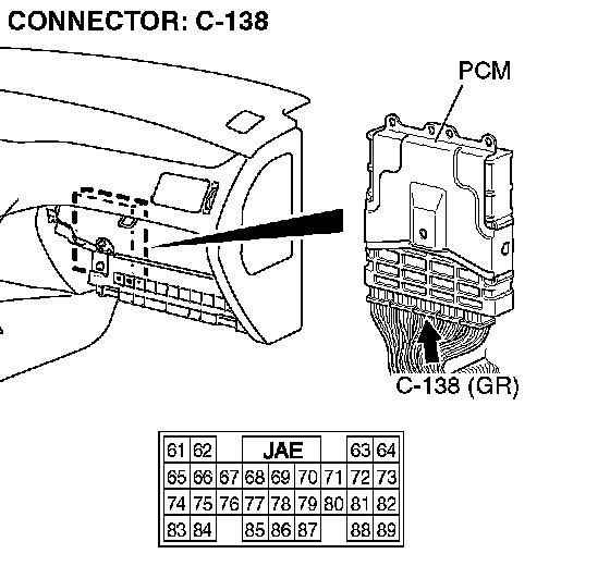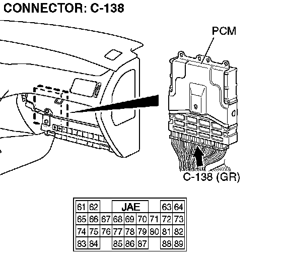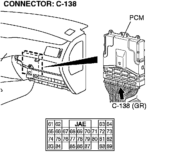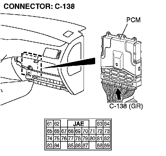 STEP 3. Check PCM connector C-138 for loose, corroded or damaged terminals, or terminals pushed back in the connector.