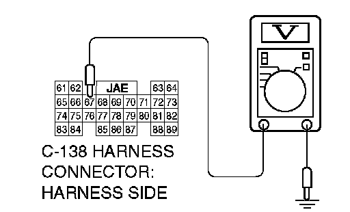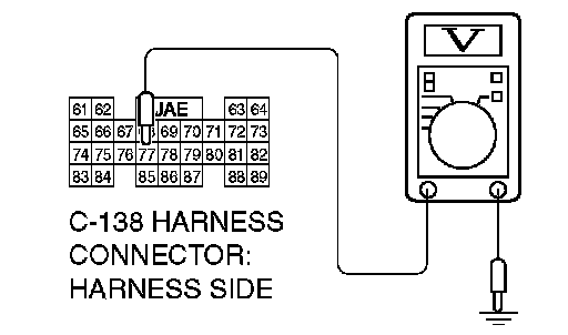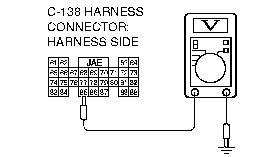 STEP 6. Measure the transmission range switch output voltage at PCM connector C-138 by backprobing. ("R" position)