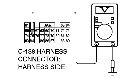 STEP 4. Measure the transmission range switch output voltage at PCM connector C-138 by backprobing. ("P" position)