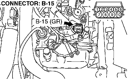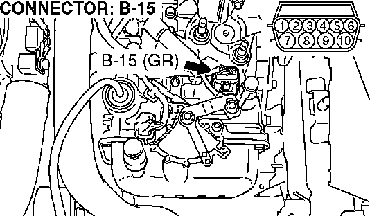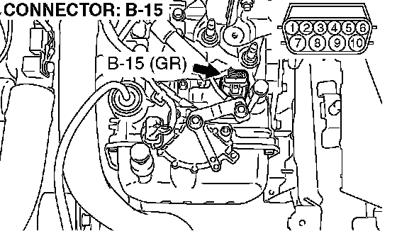 1) Disconnect connector B-15 and measure at the solenoid valve side.