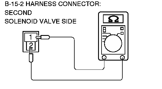 STEP 4. Measure the Second solenoid valve resistance at A/T control solenoid valve assembly connector B-15.
