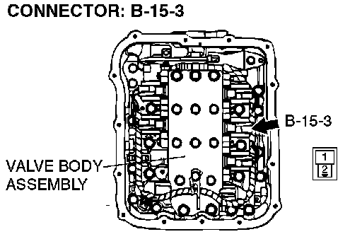 STEP 4. Measure the Overdrive solenoid valve resistance at A/T control solenoid valve assembly connector B-15.