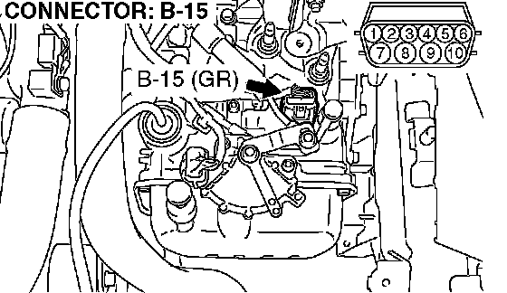 STEP 13. Check the harness for an open or short circuit to ground between A/T control solenoid valve assembly connector B-15 (terminals 3, 4, 5, and 9) and solenoid valve connectors B-15-1, B-15-2 and B-15-3.