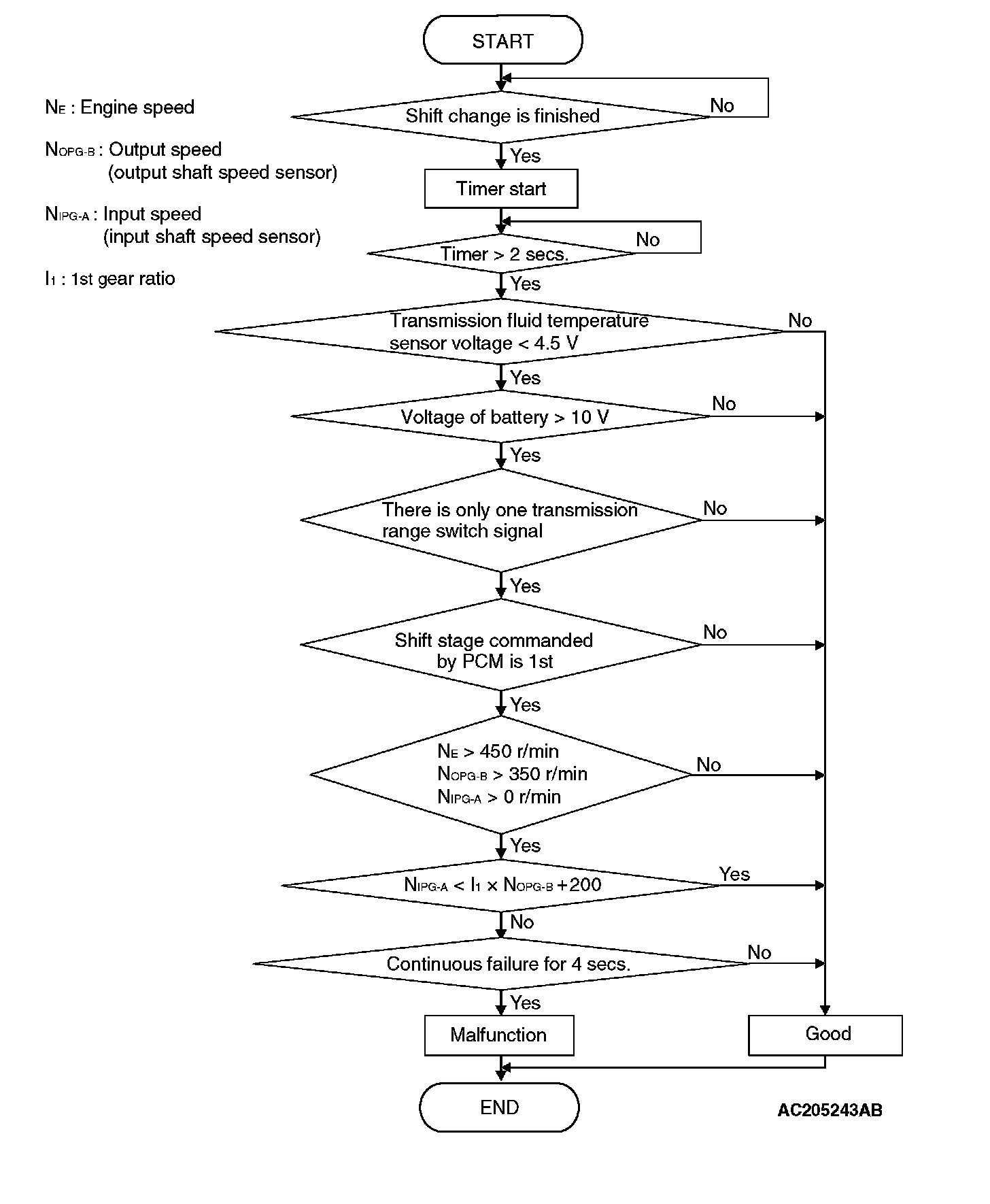 ^ In 1st gear, if a difference between turbine revolution and that value calculated from output revolution equals or exceeds specified value, PCM judges that step-out in 1st gear has occurred.
