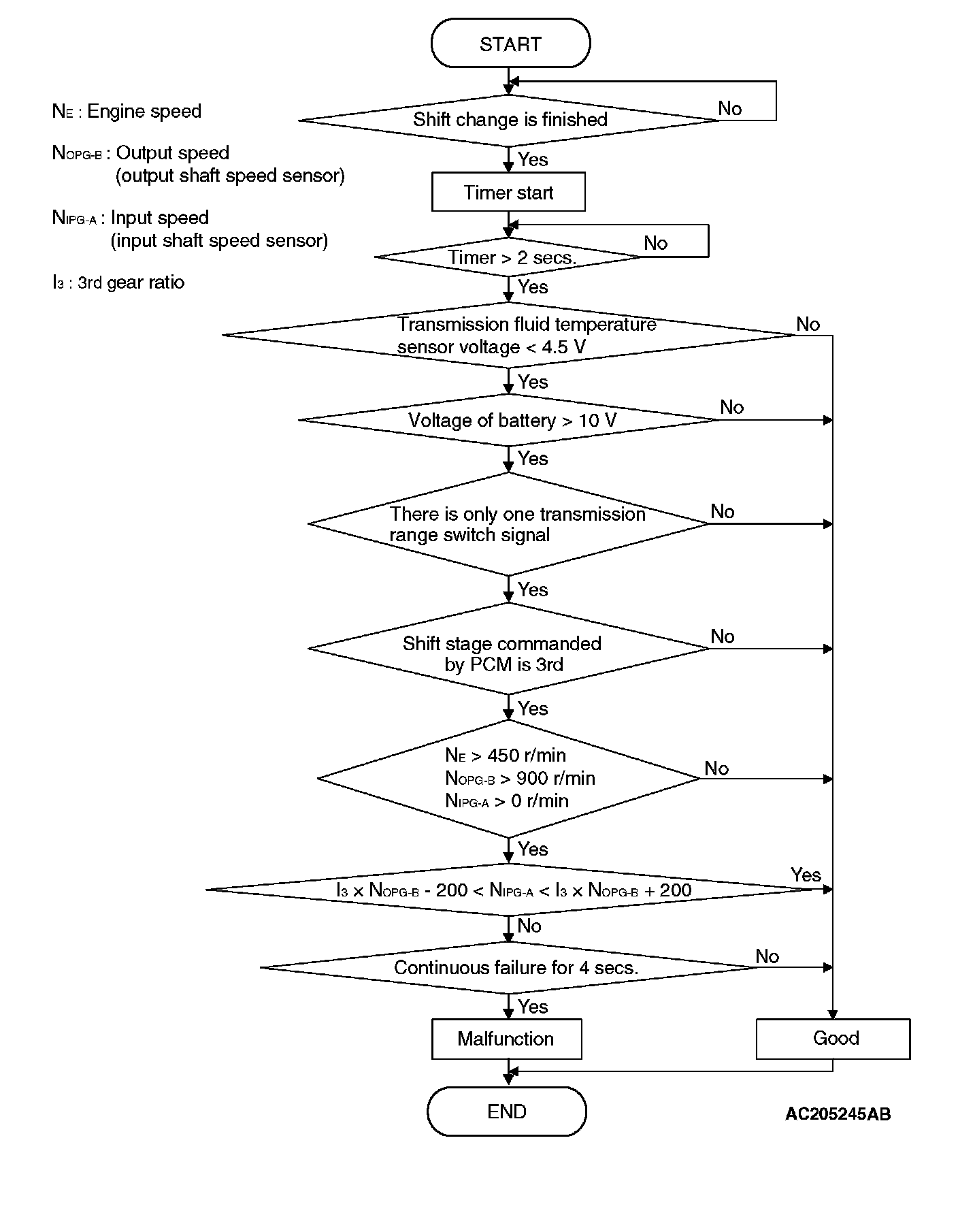 ^ In 4th gear, if a difference between turbine revolution and that value calculated from output revolution equals or exceeds specified value, PCM judges that step-out in 4th gear has occurred.